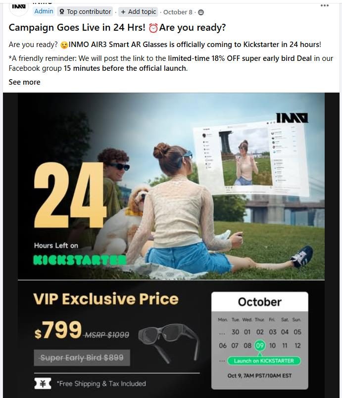 事实上,INMO AIR3已经于2025年10月9日,在全球创意众筹平台Kickstarter上完成新品首发由行业领先的众筹出海营销机构——朗翰科技全案操盘。