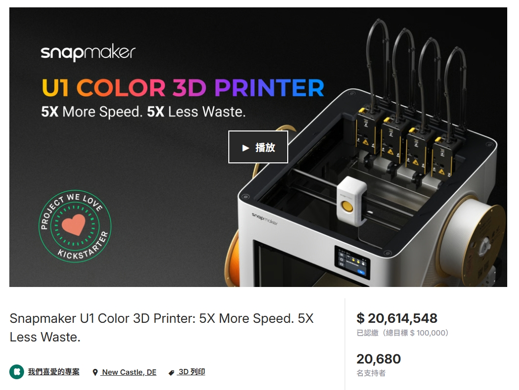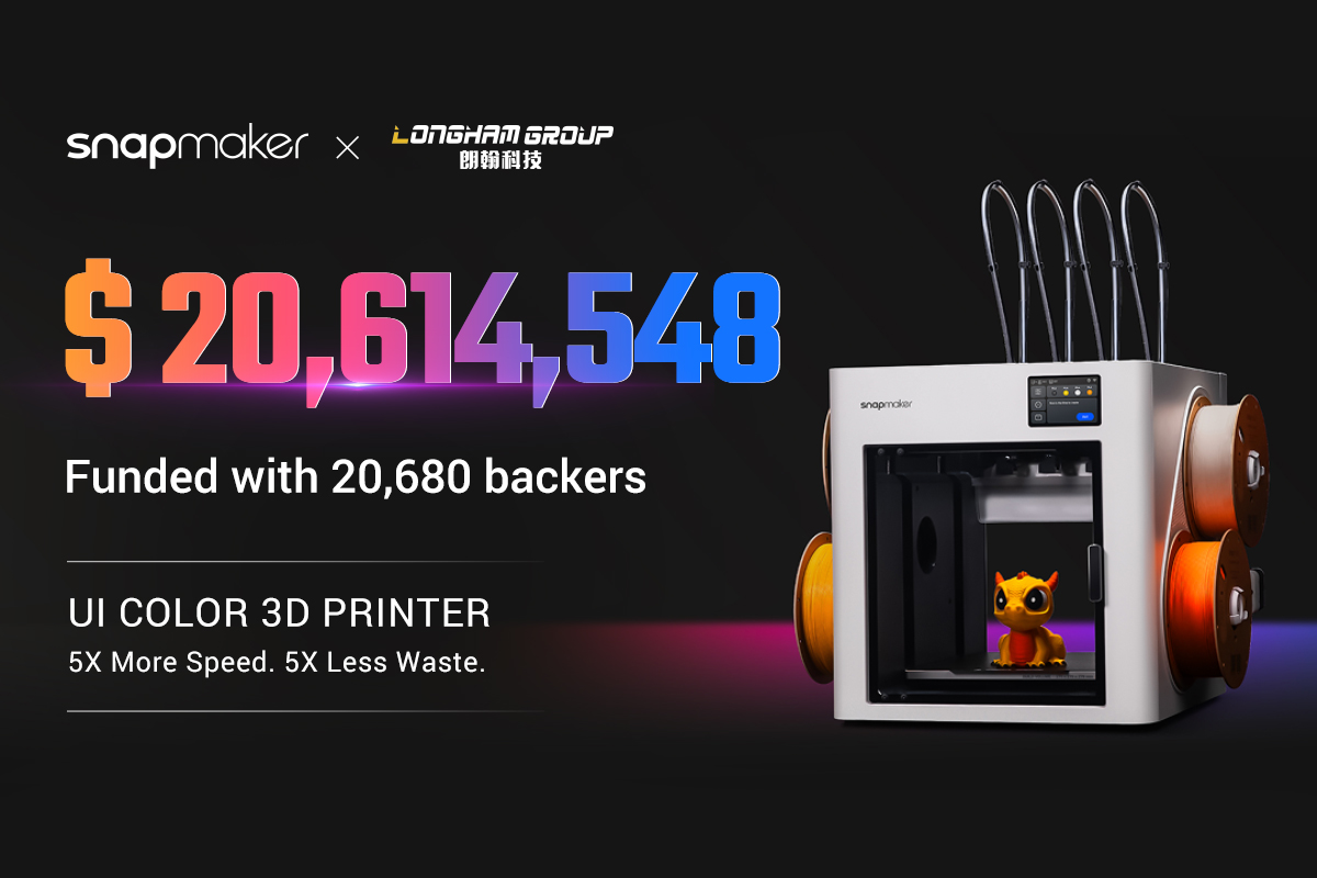 自2025年8月19日上线以来,Snapmaker U1便展现出现象级的爆发力:2分钟突破200万美元,12小时突破670万美元,不足三天即突破1000万美元!截至众筹结束(共上线43天),累计获得全球20680名支持者的青睐,总筹款金额超20,614,548美元。
